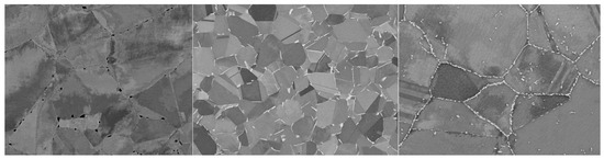 However, it appears that one of the most significant microstructural changes that affects intergranular corrosion (IGC) is the formation of carbide or topologically close-packed (TCP) phases. Metallographic analysis of samples of AISI 316 steel after corrosion tests in a LiF–BeF2 melt at 700 °C revealed the presence of grain boundary precipitation of the Cr7C3 phase, thus confirming carbon and chromium diffusion towards the grain boundaries, causing subsequent initiation of IGC processes [33]. Similarly, IGC was detected in AISI 316L, 316Ti, and 321 austenitic stainless steels after their exposure in melts based on a NaCl–KCl equimolar mixture at 750 °C [44]. The authors proposed a mechanism of corrosion of stainless steels in molten chlorides that includes the following stages: deposition of chromium-containing carbides along the grain boundaries and formation of galvanic pairs between the chromium-depleted parts of the grains of austenitic alloys and the carbide phases. Later, the same authors indicated that intermetallic topologically close-packed χ phases containing chromium and molybdenum were formed in low-carbon steels as a result of heating to 750 °C, also inducing IGC processes [45].