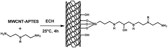 - Wang, Z.; Won, S.W. Polyethylenimine-crosslinked 3-aminopropyltriethoxysilane-grafted multiwall carbon nanotubes for efficient adsorption of reactive yellow 2 from water. Int. J. Mol. Sci. 2023, 24, 2954. [Google Scholar] [CrossRef]