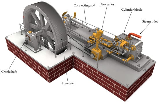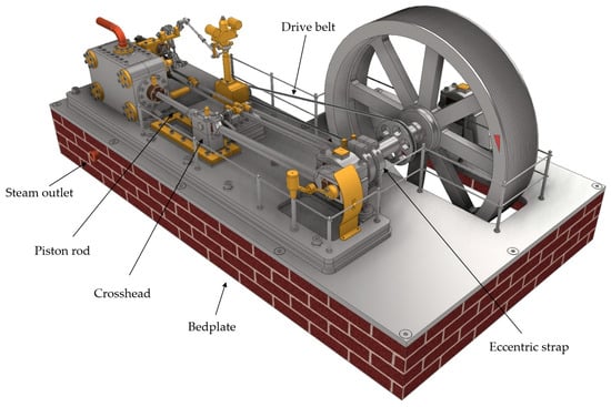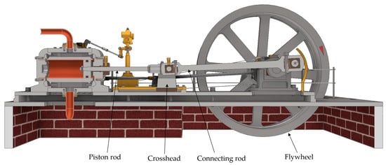 - Rojas-Sola, J.I.; Barranco-Molina, J.C. Study of the mechanical behavior of a single-cylinder horizontal steam engine with a crosshead trunk guide through the finite-element method. Appl. Sci. 2024, 14, 5878. [Google Scholar] [CrossRef]