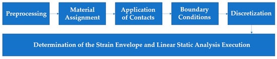 This section outlines the methodology employed to conduct the linear static analysis using FEM, as well as the working hypotheses established at the various stages. Figure 7 shows a flowchart with those stages:
