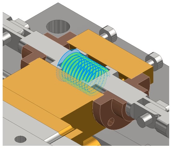 In the case of the dashpot spring housed within the dashpot control unit, a ‘spring contact’ type was employed, considering the material it is composed of (AISI 1080 steel with a shear modulus (G) of 75 GPa), its geometry (with a wire diameter (d) of 1 mm and a mean spring diameter (D) of 5.5 mm), and its configuration of 10 (N) turns, resulting in an equivalent normal stiffness (k) of 5.635 N/mm.
