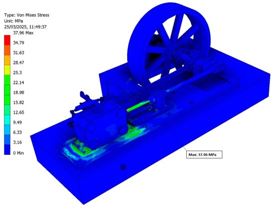 Consequently, the ultimate goal of this research is to conduct a design integrity study of the invention, performing a static linear analysis [20] using the finite element method (FEM) [21,22] to characterize its mechanical behavior. This will determine the range of steam pressures at admission (working pressures) that the machine should have to obtain a minimum safety factor value between 2 and 4, established as the optimal design range in current understanding of materials’ strength. This approach will ensure that the steam engine operates under safe conditions.