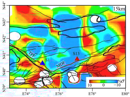 The 2024 Wushi MS7.1 earthquake represents the largest seismic event in the Southern Tianshan (STS) region in the past century. Previous research focused on the seismic sequence characteristics, co-seismic deformation, fault kinematics, rupture directivity, and aftershock distribution using methodologies such as high-precision hypocenter relocation, InSAR (Interferometric Synthetic Aperture Radar), strain and tilt monitoring, and integrated geophysical surveillance systems [31,32,33,34,35,36,37,38,39,40,41]. These studies have identified the Maidan Fault (MDF) as the causative structure, describing the event as a reverse-strike-slip event with a subordinate left-lateral component. Anomalous variations in crustal deformation, gas emissions, and ionospheric have also been documented in association with this event. However, the mechanistic linkages between deep-seated fluid and fault activity in the STS remain inadequately understood.