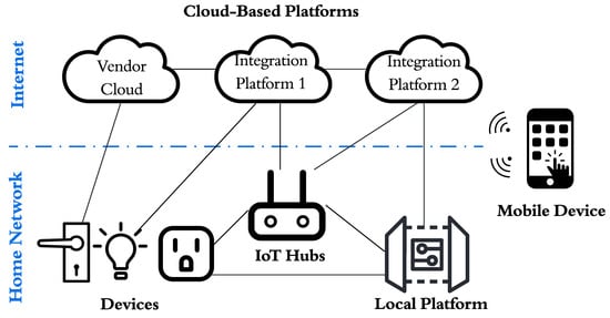 Platforms. Smart home platforms are generally categorized into cloud-based platforms and local platforms depending on their location of deployment. Cloud-based platforms are typically provided and maintained by smart device vendors or smart home system providers. Platforms offered by smart device vendors (i.e., vendor clouds) are often designed to be compatible only with devices produced by the same manufacturer. In contrast, the platforms provided by smart home system providers (i.e., integration platforms) are designed to promote greater interoperability, allowing the integration of devices from multiple brands and types. To achieve this, these platforms not only connect directly with devices or hubs but can also interface with platforms provided by device vendors. With user authorization, they can access devices connected to platforms from various manufacturers. Local platforms offer similar functionalities to cloud-based platforms, but they differ in that they are typically hosted on IoT devices, desktops or laptops, or local servers within the home network rather than in the cloud.