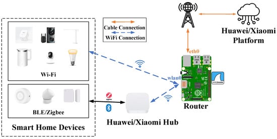The architecture of the heterogeneous multi-platform smart home system is illustrated in Figure 1. Within this system, various entities, including smart home IoT devices, hubs, platforms, and user terminals, interact with each other both in the physical environment and on the network to collectively fulfill the functions of the smart home.