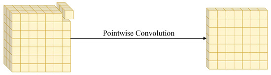 The second step of depthwise separable convolution is pointwise convolution, represented by Figure 5. This operation performs channel-wise computation by applying a standard convolution with a 1 × 1 kernel over the channel dimension. This allows combining the input channels to produce the desired number of output channels.