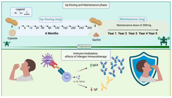 - Randazzese, S.F.; Panasiti, I.; Caminiti, L.; Catamerò, F.; Landi, M.; De Filippo, M.; Votto, M.; Olcese, R.; Favuzza, F.; Giovannini, M.; et al. Current state and advances in desensitization for peanut allergy in pediatric age. Pediatr. Allergy Immunol. 2024, 35, e14127. [Google Scholar] [CrossRef]