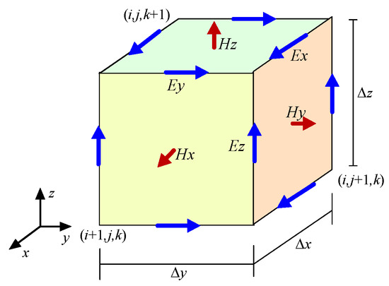The FDTD algorithm uses Yee cells to discretize the target, as shown in Figure 1. This algorithm uses center-difference discretization for Maxwell’s curl equation in both time and space, resulting in explicit iterations of the electric and magnetic fields [5].