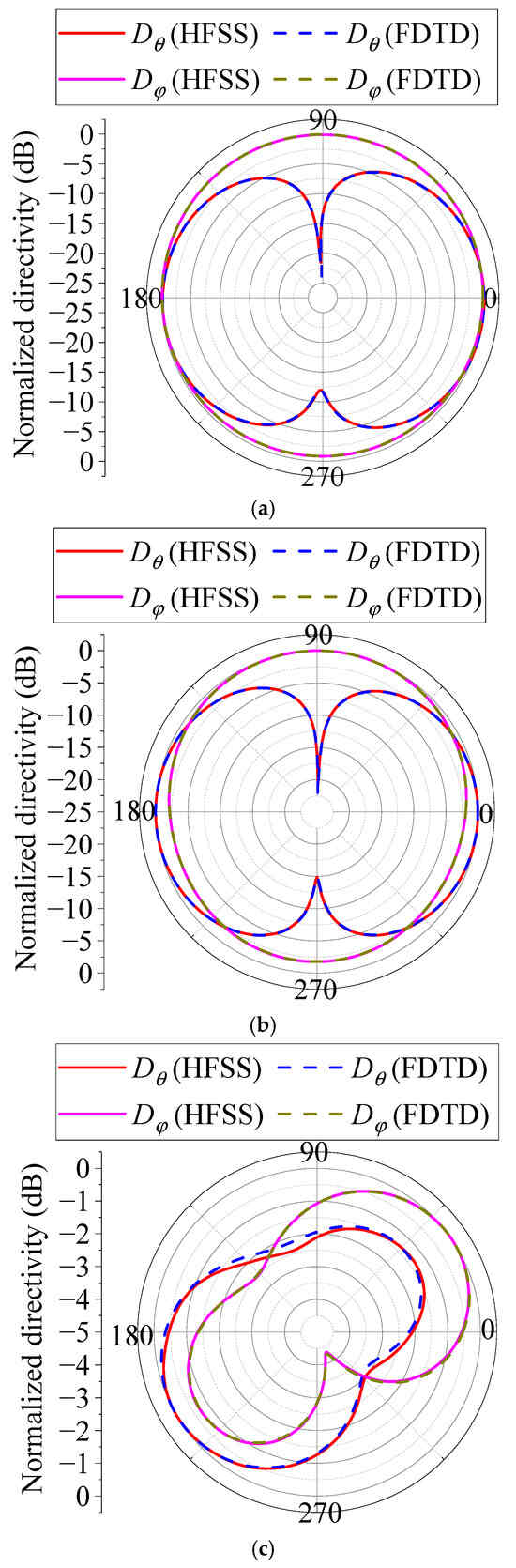 Antenna far-field radiation direction diagram: (a) , (b) , and (c) .