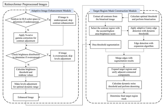 The determination of the final satellite target area involves two components: the adaptive image enhancement module and the target area mask construction module. Figure 8 illustrates the specific steps and processes involved in these two components.