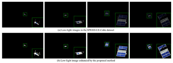 While traditional methods and deep learning methods have produced satisfactory results in low-light conditions for natural scenes, they struggle to perform well when addressing deep-space background targets. This difficulty arises from the unique characteristics of the space environment. Specifically, the lighting conditions and background noise in the space environment are significantly more complex than those on the Earth’s surface [4]. The absence of stable light sources, along with the presence of strong noise [2,5] and highly variable illumination, poses substantial challenges. As a result, traditional enhancement methods and existing deep-learning models often struggle to produce satisfactory results when applied to such images.