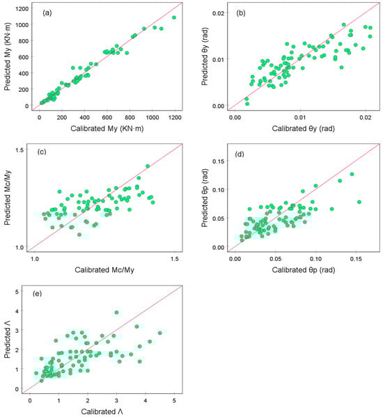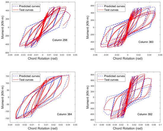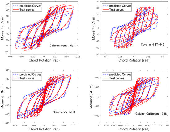 - The empirical prediction equations for the hysteretic model parameters based on the design parameters were established, i.e., the ModIMK model was determined. The predicted and test hysteretic curves were compared to confirm the proposed model can predict hysteretic behavior accurately. This work enabled a more comprehensive and accurate application of the ModIMK model in earthquake engineering studies involving RC circular columns.