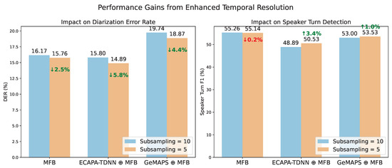 - A detailed analysis of temporal resolution’s impact on diarization performance, challenging conventional subsampling approaches and demonstrating the importance of fine-grained temporal analysis for different feature combinations.
