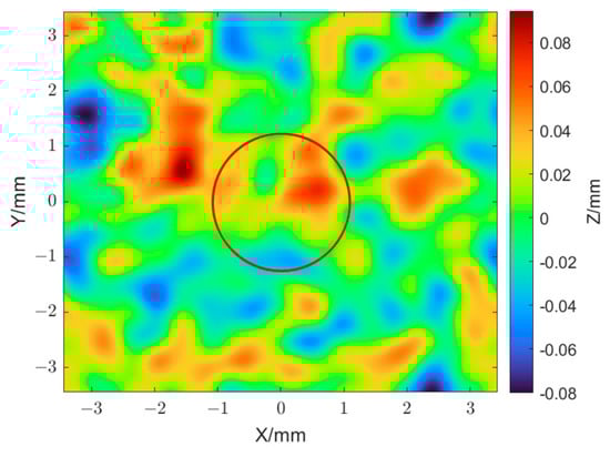 Figure 3. The laser beam waist (indicated by the red circle) at the target surface was set to 1 mm in diameter, matching the characteristic scale of the surface roughness features to enable proper optical interaction.