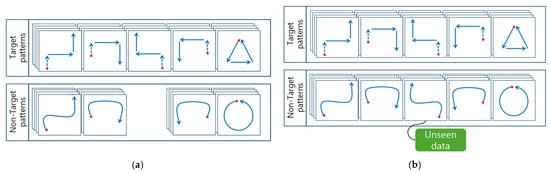 Future research should aim to improve the classification of unseen non-target patterns by addressing the limitations of training diversity. Although all unseen patterns in this study shared the characteristic of smooth movement, the proposed model struggled to distinguish some signals from target signals. A deeper understanding of this issue could be achieved by further investigating the impact of different movement patterns on classification performance. In addition, the non-target patterns used in this study were defined as smoothed versions of target movements, intentionally removing pauses and angular changes. While this design emphasizes subtle differences, it does not fully reflect the variability of natural movements that may be exhibited by real users. Future work should consider incorporating more diverse and unconstrained non-target gestures to better simulate real-world behavior.