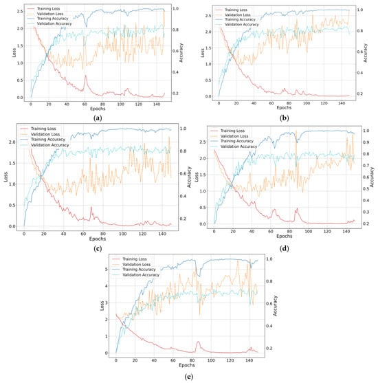 Figure 6 presents the accuracy and loss curves for both the training and validation phases. Although an increase in validation loss was observed, this does not necessarily indicate deteriorating performance. The rise in loss could occur due to correct predictions made with low confidence. The smooth convergence of the accuracy curves supports the model’s stability throughout training.