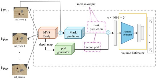 In E-Volume [7] network architectures, a learning-based multi-view stereo (MVS) technique is used to overcome the reliance on depth cameras in traditional methods, reducing hardware requirements. This system captures multiple images from different angles and uses the backbone network of MVSNet to generate depth maps. These depth maps are then converted into a complete scene point cloud, providing a three-dimensional representation of the scene. Next, a segmentation mask extracts the target object from the point cloud, ensuring that only the relevant data are considered for volume estimation.