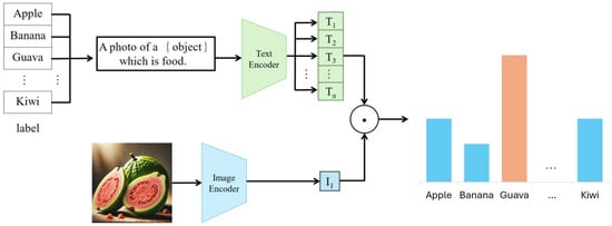 where represents the actual label, usually a one-hot vector indicating that sample belongs to a specific category. is the predicted probability. Fine tuning the model can be used for zero-shot classification of food categories, as shown in Figure 4.