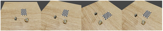 First, the food 3D models from the NutritionVerse3D [56] dataset are rendered onto a plane using Blender to generate precise scene image data, as shown in Figure 5.