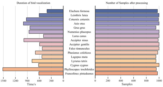 | ID | Latin Name | Number of Audio Recordings | Duration of Bird Vocalization (s) |