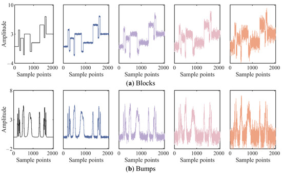 - Donoho, D.L.; Johnstone, I.M. Ideal spatial adaptation by wavelet shrinkage. Biometrika 1994, 81, 425–455. [Google Scholar]