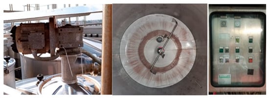 In Fermenter 21A, a circular conduit was installed around the external lateral surface, at 2.0 m from the base and connected to the centralized compressed air network. From this conduit, four radial pipes, each 50.0 cm long, extended into the tank, terminating in four injection nozzles (Figure 3 and Figure 4; Table 1).