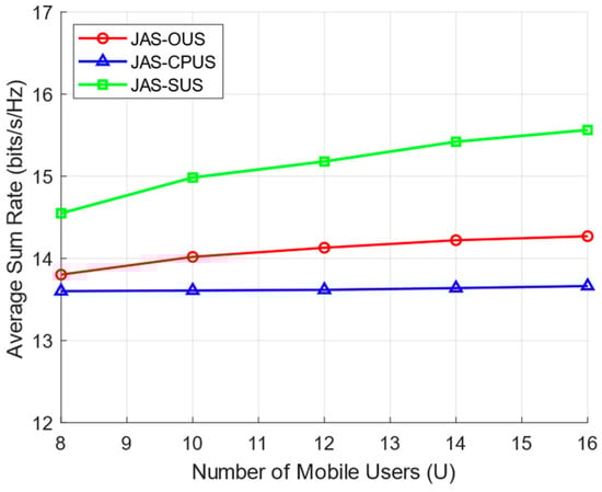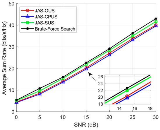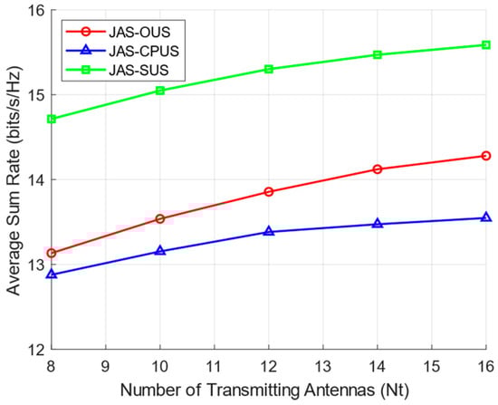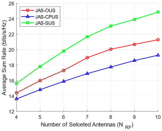 antennas are retained for signal transmission. In each iteration, all currently active antennas are examined. For each antenna, it is temporarily deactivated, and the OUS algorithm is used to determine the best user group under the current antenna configuration. Based on the selected antenna–user combination, the system sum rate is computed. By comparing the sum rates across all possible antenna deactivations, the antenna whose removal results in the highest sum rate is identified as having the least contribution to the system and is thus removed. After