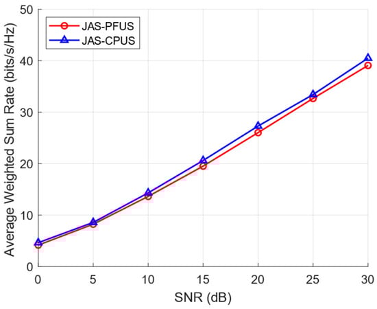 In user scheduling for communication systems, to ensure user fairness while improving system capacity, several fairness-oriented scheduling strategies are commonly employed in addition to PF scheduling. These include round-robin scheduling, max-min fairness scheduling, and weighted fair queuing, among others. Round-robin scheduling allocates the channel to users in a fixed cyclic order, regardless of their current channel conditions. It is simple to implement and offers good user fairness, but tends to ignore channel quality, resulting in lower system throughput. Max-min fairness scheduling prioritizes users with the lowest current transmission rate, maximizing their resource allocation. This approach is especially favorable to low-rate users and is suitable for scenarios with strict quality of service (QoS) requirements, though it may sacrifice overall system throughput. Weighted fair queuing allocates resources based on assigned weights reflecting user priorities or data rates, offering a flexible mechanism to meet differentiated QoS demands. Among these methods, the adopted PF scheduling achieves a balance between fairness and efficiency, ensuring acceptable fairness across users while still maintaining a high system sum rate.