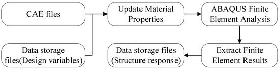 The implementation workflow of the framework is illustrated in Figure 2. Prior to initiating the program, a .cae model file must be preconfigured in ABAQUS via its GUI. This file encompasses the part’s geometric model, material properties, meshing details, boundary conditions, and load definitions.
