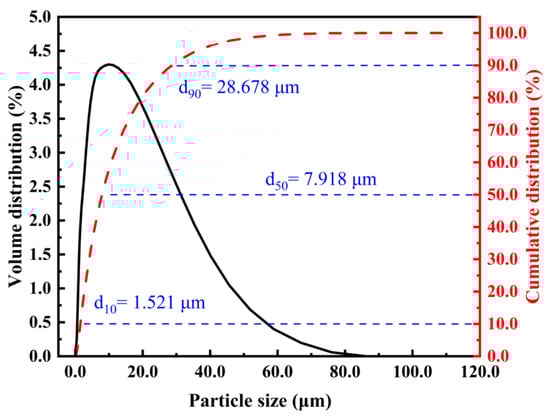 A mineral dust was selected in this research, the main composition of which is hematite Fe2O3, and the size distribution of the test dust is shown in Figure 1.