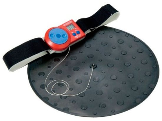 A digital vertical jump device (Takei Jumpmeter, Figure 2) was used to measure the vertical jump performance of the players. In the vertical jump test, the athlete’s knees were in a squat position at 90° flexion, while the value of their jump from a standing position with hands free was recorded. A 1 min rest period was given between attempts. Players had 2 attempts for the vertical jump, and the best score was recorded [37].