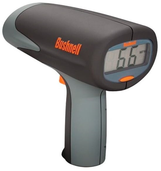 In the study, a Bushnell radar gun from the USA (Figure 3), capable of measuring speeds in the range of 16–177 km/h with a precision of ±2 km/h, was used to determine the ball speed after the players kicked the ball. In the study, they kicked the ball from the penalty spot, 11 m from the goal post, using the instep kick technique, after determining the dominant foot. The kicks were made in accordance with FIFA standards. The kickers were asked to make the most powerful kick targeting the goal with the correct kicking technique (position of the supporting foot, movement of the kicking leg, foot strike, contact with the ball, and movement of the upper body). The highest velocity recording device, equipped with a handheld radar, was placed on a 122 cm high fixed tripod, 200 cm behind a standard football goal line, directly opposite the target of the player’s kick. Two attempts were made to achieve highest possible rating, and the results were recorded in miles per hour (mph) and then converted to km/h [38].