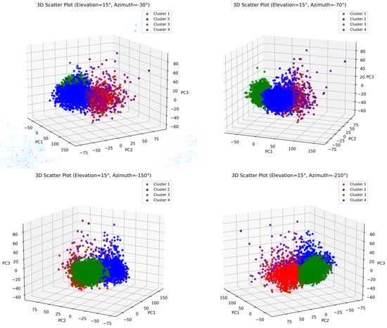 The elbow method is a commonly used technique for determining the optimal K value [36]. The core idea is that as the number of clusters (K) increases, the intra-cluster cohesion improves, and the sum of squared errors (SSE) decreases gradually. When K reaches the true number of clusters, the rate of decline in SSE slows down significantly, forming an “elbow” point in the graph. The K value corresponding to this “elbow” is considered the optimal number of clusters.
