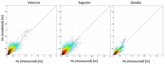 Hs scatter plot for data measured vs. modelled at Valencia Port (Ports of Valencia, Sagunto and Gandía).
