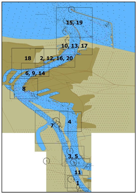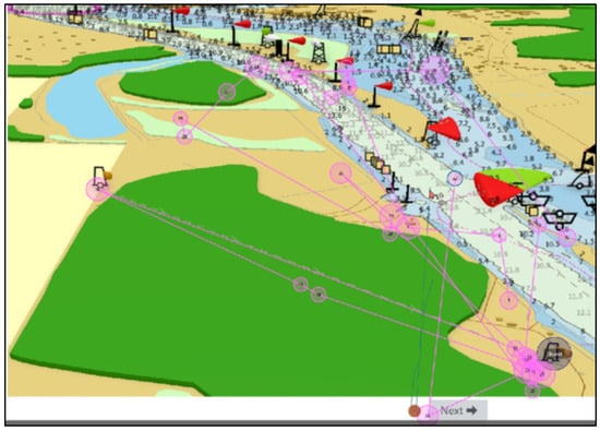 The preparation of twenty test scenarios was intended to simulate one stage of the navigation process—the assessment of the navigation situation using an electronic map. In a real-world setting, this task involves the watch officer analysing the content of the map, visually interpreting the types and positioning of objects, and assessing the safety of the ship’s conducting on this basis.