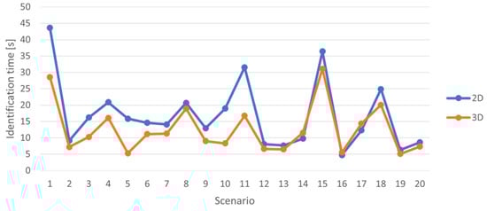 The study was conducted with the approval of the Bioethics Committee of the District Medical Chamber. All participants were thoroughly informed about the purpose and procedure of the study and subsequently provided informed consent to participate in the experiment. The research procedure lasted approximately 10 min on average and included the preparation and configuration of measurement equipment. In the initial stage, the eye tracker was calibrated, after which participants read the test instructions displayed on the computer screen. They then proceeded to the experimental task, which consisted of 20 scenarios. Depending on the assigned study group, the test was conducted using either 2D or 3D maps.