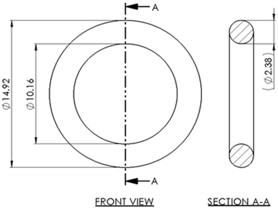 Before conducting CFD, a Computer-Aided Design (CAD) model of the O-ring was created (Figure 1). The designed model was then exported to SolidWorks Flow Simulation version 2021 (SWFS) by Solidworks Corporation (Waltham, MA, USA), where detailed conditions were applied to define the problem for numerical computation [4,5]. Since the precision of the final results are determined largely by the pre-processing routine [4,5,6], this report separates the procedure into four key steps.
