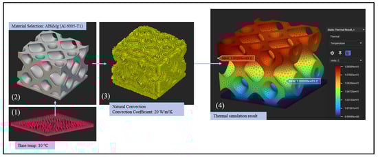 For the thermal simulation section, additional input factors are materials, ambient temperature, and convection coefficient. Additional operations are conducted at this stage such as creating mesh [