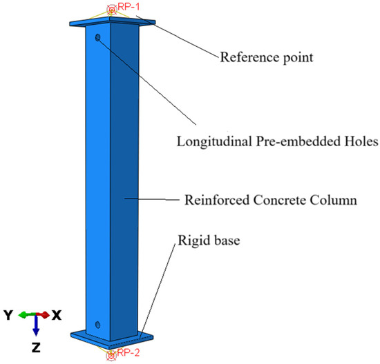 While the longitudinal pre-embedded holes in reinforced concrete columns have a variety of beneficial functions improving the life cycle efficiency of buildings and reducing life cycle carbon emissions, they also have certain negative influences on the mechanical properties of the columns. Due to the presence of the embedded pipes, the cross-sectional area of a reinforced concrete column is reduced, leading to stress concentration around the holes, which may impact the mechanical properties of a reinforced concrete column.