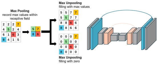 Super-resolution reconstruction of images has been a work of great interest []. Sub-pixel convolution is a technique commonly used in image processing, particularly in SR reconstruction, and has achieved significant results in target detection, image segmentation, and high-resolution reconstruction of images and videos in the field of computer vision (CV) [,,]. During the image data acquisition process in photography and other fields, images are discretized. Due to the limitations of hardware devices such as photoreactive elements, a single pixel typically represents the color of a certain area. The finer pixels that are not recorded between two adjacent pixels are referred to as sub-pixels. SR operations are often described as the process of obtaining these unknown sub-pixels. In neural network models, upsampling methods are commonly used to restore or interpolate LR images []. The upsampling process typically involves uniform interpolation within a specified receptive field using specific methods such as Max Pooling or Average Pooling, which are entirely composite mathematical computation operations, as shown in Figure 3.