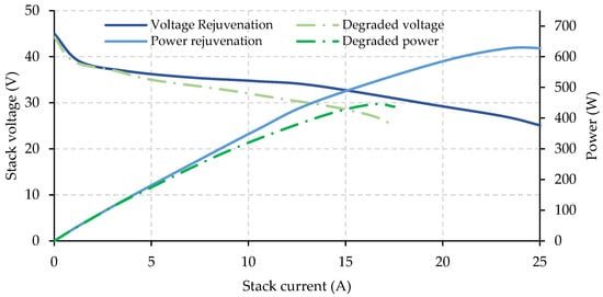 PEM fuel cell performance characterization before and after the rejuvenation procedure.