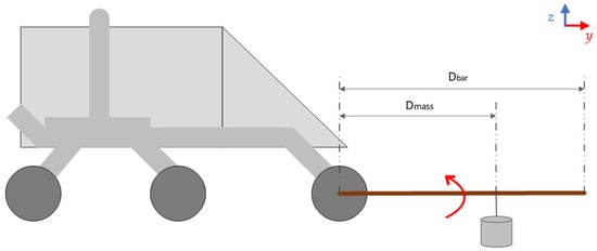 To achieve the pivoting connection needed in the YX plane between the differential bar and the upper chassis, a new piece ((4) in yellow) has been designed that is fixed to the aluminium modular profiles and houses 2 bearings and an M8 bolt, minimizing friction and ensuring a secure connection with the structure. The central part of the structure is designed to house the power system components (described in Section 3). It is built in a modular way, using 20 mm × 20 mm aluminium profiles and “V” threaded connections.