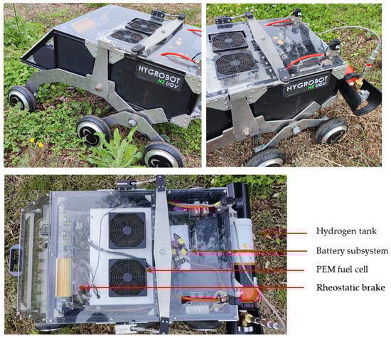 Regarding the next generation of mobile robots, these devices are expected to utilize eco-friendly and economical power sources to extend their operational duration and meet environmental standards, enabling their use in various sectors. While significant progress has been made in developing commercially viable solutions for mobile robots in terms of their physical structure, sensory capabilities, movement planning, and operational control, their widespread adoption remains constrained due to the lack of efficient power systems for use in diverse environments [2,3]. This limitation is primarily due to the scarcity of efficient energy systems suitable for use in hostile environments. For example, battery-based power systems for ground robotic platforms present significant challenges in terms of off-road applications. One of the primary limitations is the relatively low energy density, which restricts the range and operational endurance of these vehicles [4]. In off-road scenarios, where robots often traverse rugged terrain or perform prolonged tasks in remote areas, the energy constraints of battery-powered systems become more pronounced, requiring frequent recharging or battery swapping, which can disrupt operations. Additionally, the weight of batteries, which directly correlates with their energy storage capacity, impacts the overall performance of the robotic platform. Heavier batteries reduce manoeuvrability, making it more difficult for robots to navigate challenging landscapes. This weight penalty also limits the payload capacity [5]. Furthermore, battery performance can degrade rapidly in extreme temperatures [6]. As a result, there is a pressing need for research into higher-density energy storage solutions and innovative designs to optimize the energy-to-weight ratio of robotic systems.