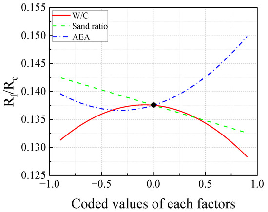 Figure 8a, where the contour gradient shows that AEA has a slightly greater impact than W/C. Within the W/C range of 0.37~0.39 and AEA range of 0.280~0.300%, the combination of the two factors synergistically enhances R