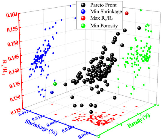 c (0.125~0.182), minimize porosity (2.68~8.55%), and minimize shrinkage (0.042~0.050%)—the specific parameters of NSGA-III are shown in