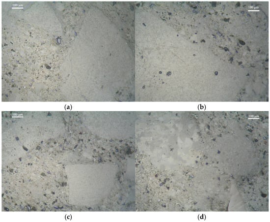At the end of the curing period, the specimens were subjected to compressive yield strength tests according to UNI EN 772-1:2015 [55], water absorption tests according to UNI EN 772-11:2011 [56], and the density and Young’s modulus were calculated. Optical microscopy observations (reflected polarized light) were also carried out to evaluate the microstructure of the samples.