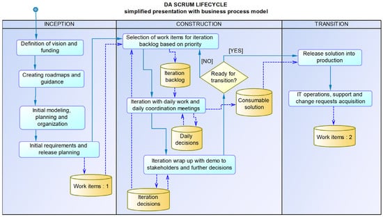 - The concept of Disciplined Agile Functional Ordered Work Items List (DA-FOWIL)—includes an ordered work items list, based on software functions (SF) (derived from business processes and software functional patterns) and work items list patterns. The created DA-FOWIL work items list could be used in iterations planning of DA-based software development;