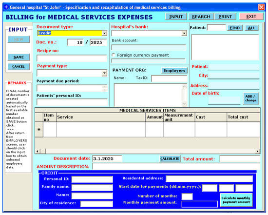 | The rest of coding tables data input | 5–20 | For each: “type of payment, banks, patients, patient’s employment companies” × 4 = 16 | |