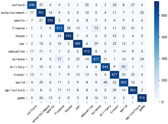 - THUCNews [43]: This dataset was sourced from news headlines published on the Sina News platform. To ensure uniform input length, samples with character lengths between 10 and 30 were selected, resulting in a dataset of 100,000 entries evenly distributed across 10 categories.