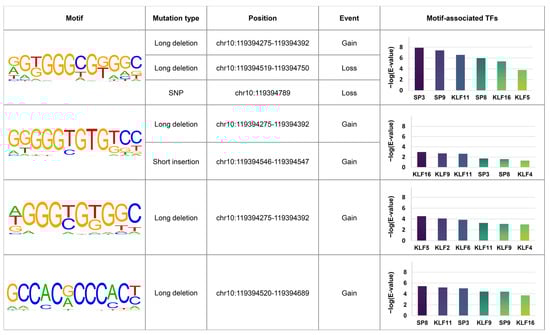 3.4. Analysis of Mutation-Associated Motifs in Z-DNA-Intersected Enhancer Elements